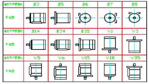 YBX4防爆電機(jī)的安裝方式符合GB997《電機(jī)結(jié)構(gòu)及安裝型式代號》及IEC34-7 的規(guī)定。本系列電動機(jī)有以下5 種基本結(jié)構(gòu)型式:B3—機(jī)座帶底腳、端蓋無凸緣;B5—機(jī)座不帶底腳、端蓋有凸緣;B35—機(jī)座帶底腳、端蓋有凸緣;B14—機(jī)座不帶底腳、端蓋有小凸緣;B34—機(jī)座帶底腳、端蓋有小凸緣。本系列電動機(jī)在上述5 種基本結(jié)構(gòu)上,可派生15 種常用結(jié)構(gòu)及安裝型式見下表: